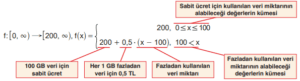 Bu durumda, kullanılan veri miktarı \( x \) (GB) ve aylık ücret \( f(x) \) (TL) olsun. Fonksiyonun cebirsel temsili şu şekilde olacaktır: