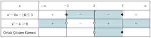 - Tablodan yararlanarak eşitsizliğin çözüm kümesini yazın.