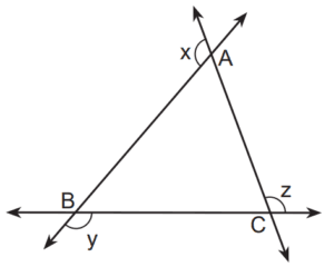Eğer bir üçgenin dış açıları \( x, y, z \) ise:
