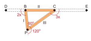Bir üçgenin dış açıları \( 3x, 2x, 120^\circ \) olarak verilmiştir. Dış açılar toplamı teoremini kullanarak \( x \) değerini ve dolayısıyla diğer açıları bulalım.