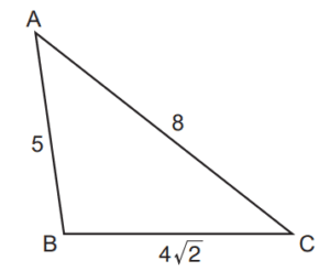 Bir üçgenin kenar uzunlukları \( |AB| = 5 \text{ cm} \), \( |AC| = 8 \text{ cm} \) ve \( |BC| = 4\sqrt{2} \text{ cm} \) olarak verilmiştir. Bu üçgenin iç açılarının ölçülerini büyükten küçüğe doğru sıralayalım.